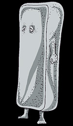 ”ぬらりひょうん”同様、妖怪漫画「ゲゲゲの鬼太郎」に登場する妖怪の中には”UMA”と思わしき妖怪が結構存在すると思われます。その中で気になるのが”いったんもめん”と”ぬりかべ”です。 この2つの妖怪は、常に主人公・鬼太郎の”助っ人”として2人1組の”セット”として登場し、まるで”名タッグコンビ”のような連携でいつも鬼太郎を助けています。もしこれらの妖怪が実在の”UMA”だとしたら、実は彼らも元は”同じ妖怪”なのではないか?と考えているんです。 まず、”いったんもめん”についてですが、飛鳥昭雄氏の最新著書である「NPAシリーズ第39弾 プラズマUMAの謎とチュパカブラ」の中で取り上げられている”スペース・クリッター(単にクリッターともいう)”、”スペース・キャタピラー”、”宇宙クラゲ”、宇宙ホタル”、そして”スカイフィッシュ”等の”プラズマ生物”こそ”妖怪・いったんもめん”の正体ではないか?と僕は睨んでいるんです。その”理由”は言うまでも無く色が白く空中をフワフワと漂っている特徴からです。中でも”スペース・クリッター”には特定した形が無く、それが薄っぺらい布状に白く光って空中を浮遊していればそれはまさに”いったんもめん”そのものなんです。 しかし、”プラズマUMA”の中には空中を浮遊するものだけでなく、地球内部に侵入するものもいるはず。そして、地中に存在する”金属”や”岩石”等の様々な鉱物を体内に付着ないし吸収して地上に現れれば、そこに突如”壁”が現れたようになるはずです。これこそ、まさに”妖怪・ぬりかべ”の正体ではないでしょうか。 ちなみに、その他の登場人物(というか妖怪)である”ネコ娘”、”ネズミ男”、”砂かけ婆婆”、”小泣き爺爺”等はあくまでも”創作上”の妖怪だと思いますが・・・。 いったんもめん ぬりかべ |